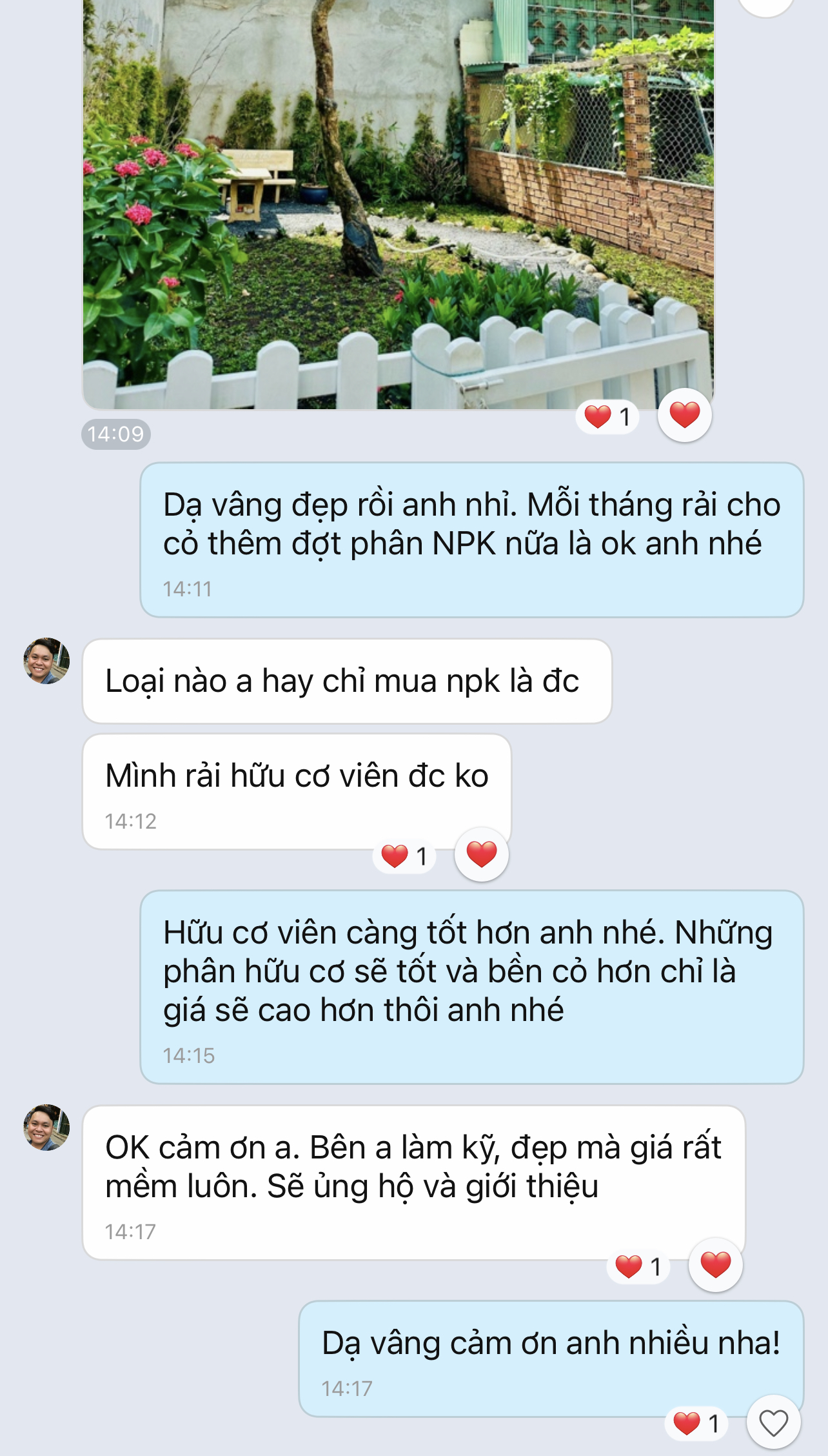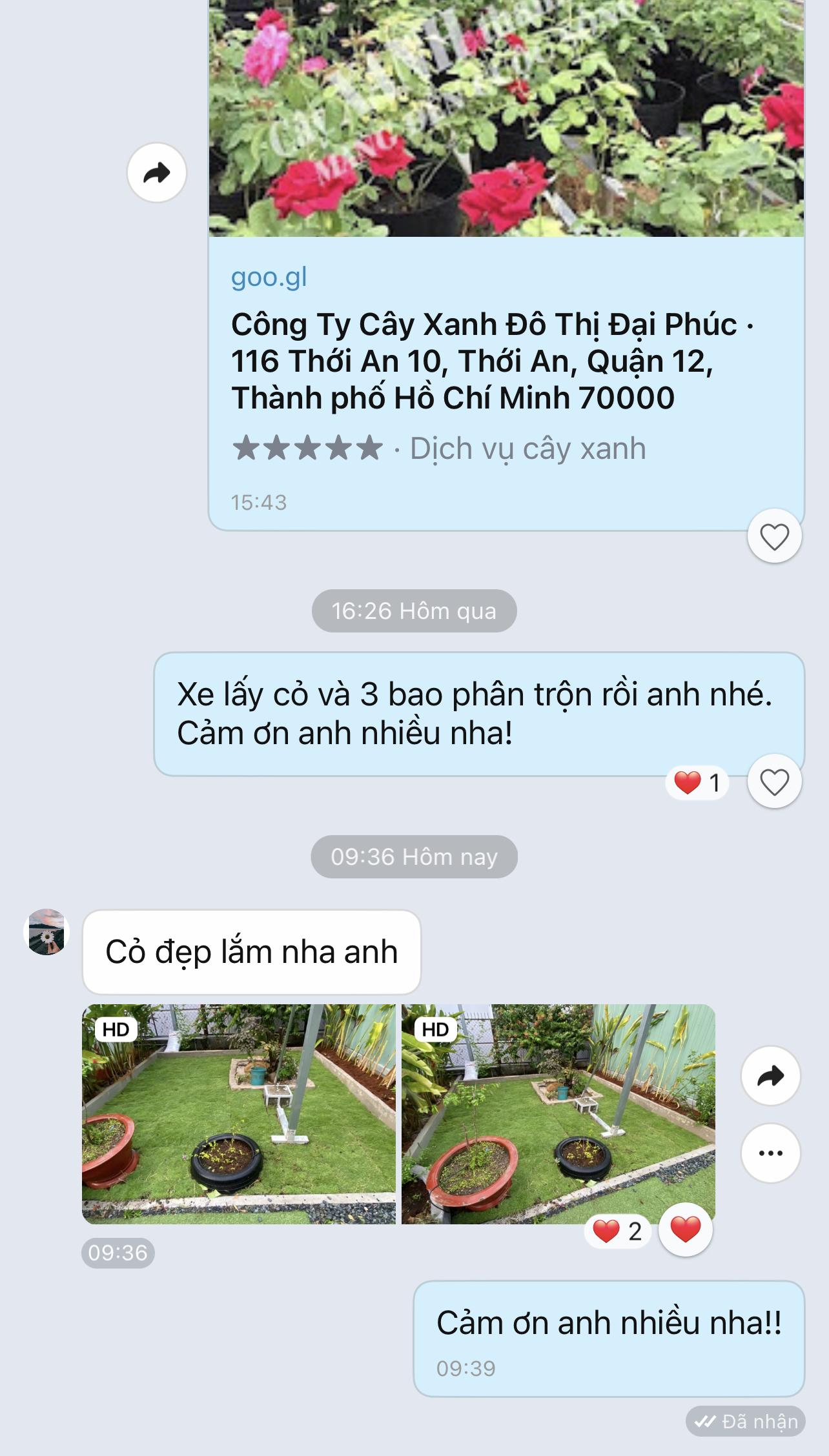 “Thi công sân vườn rất đẹp, chuyên nghiệp. Đội ngũ công nhân làm việc có trách nhiệm cao, đặc biệt không phát sinh thêm chi phí. Mình cũng từng nhờ nhiều đơn vị cây xanh nhưng nay làm về cây xanh chắc chỉ nhờ đến Cây Xanh Thành Phố thôi ^^!”