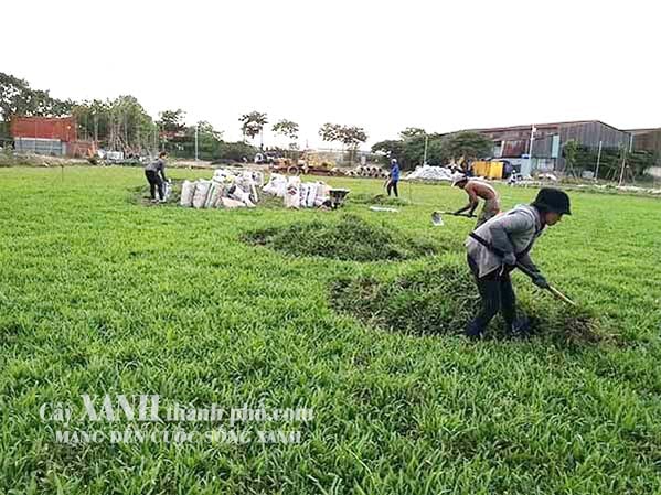 Thu hoạch cỏ Nhung Nhật để giao cho khách hàng của Cây Xanh Thành Phố.