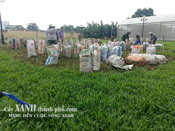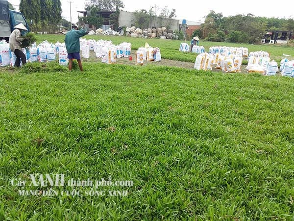 Hình ảnh cung cấp cỏ lá tre cho khách hàng của Cây Xanh Thành Phố