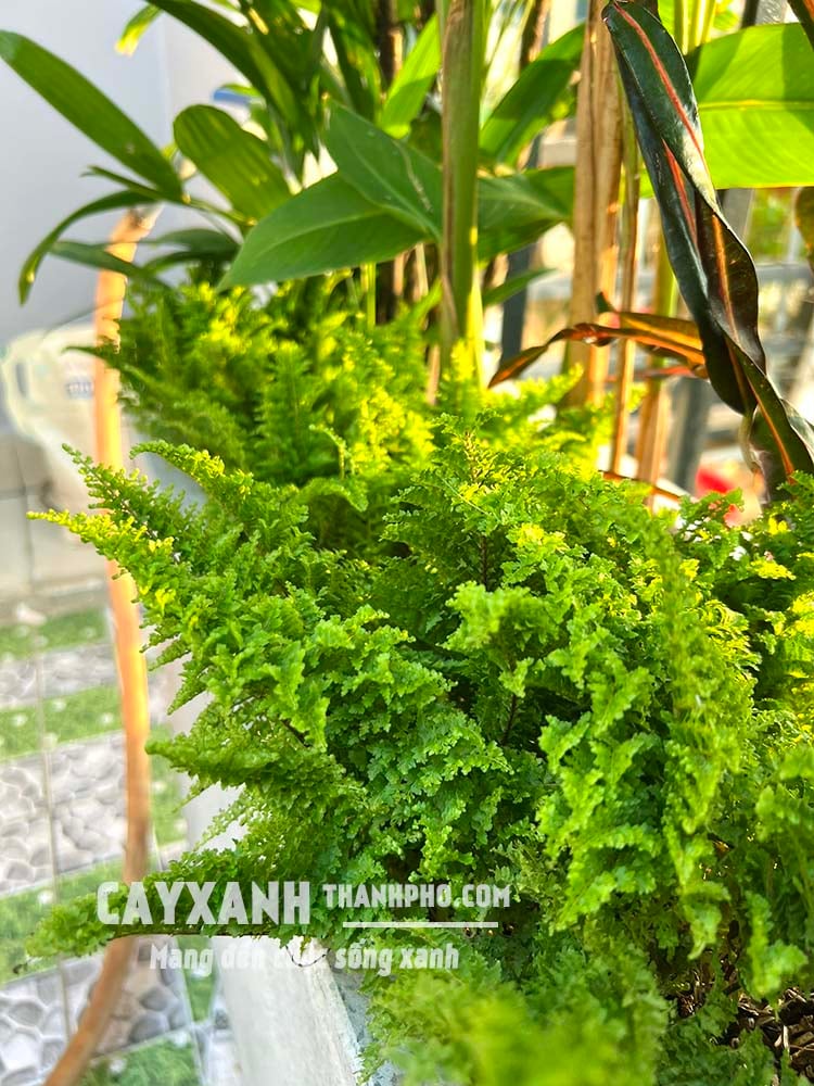 Cây dương xỉ lá nhuyễn mang hình dáng nhỏ nhắn khi trồng vào chậu kiểng rất đẹp hoặc trồng phủ chân các gốc cây xanh, cây kiểng lớn rất phù hợp. Dương xỉ lá nhuyễn làm tiểu cảnh non bộ, tạo cảnh quan tự nhiên hài hòa, trồng thảm đều rất tuyệt.