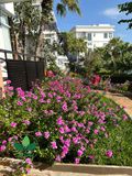 Dừa cạn nở kín cả bồn hoa, tạo điểm nhấn rực rỡ cho khuôn viên sang trọng và hiện đại.