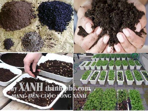 Đầu tiên là bạn lấy khoảng 8 xố đất ở ruộng vườn, có thể là đất thịt, đất đen hoặc đất màu, đất phù sa. Đây là loại đất tơi, nhiều dinh dưỡng nên rất thích hợp để trồng rau. Tiếp đến là bạn lấy khoảng 1 xố giá thể hay còn gọi là chất làm tơi đất; có thể là xơ dừa hoặc trấu và 1 xố phân hữu cơ là phân chuồng hay phân trùn quế. Tỷ lệ trộn của các thành phần này tương đương 8:2, và trong vòng 1 tháng trước khi trồng.
