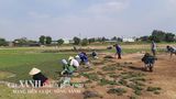 Công nhân Cây Xanh Đại Phúc đang tiến hành sản xuất cỏ tại vườn ươm